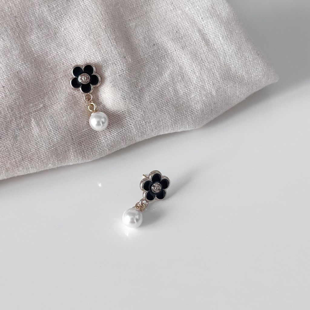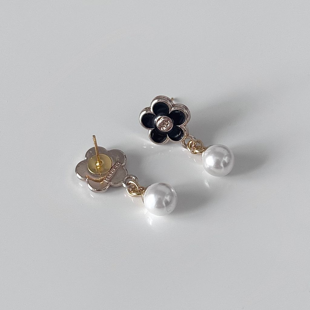 RECC.EARR049 香奈兒CHANEL中古小花鈕扣改造珍珠耳環_黑