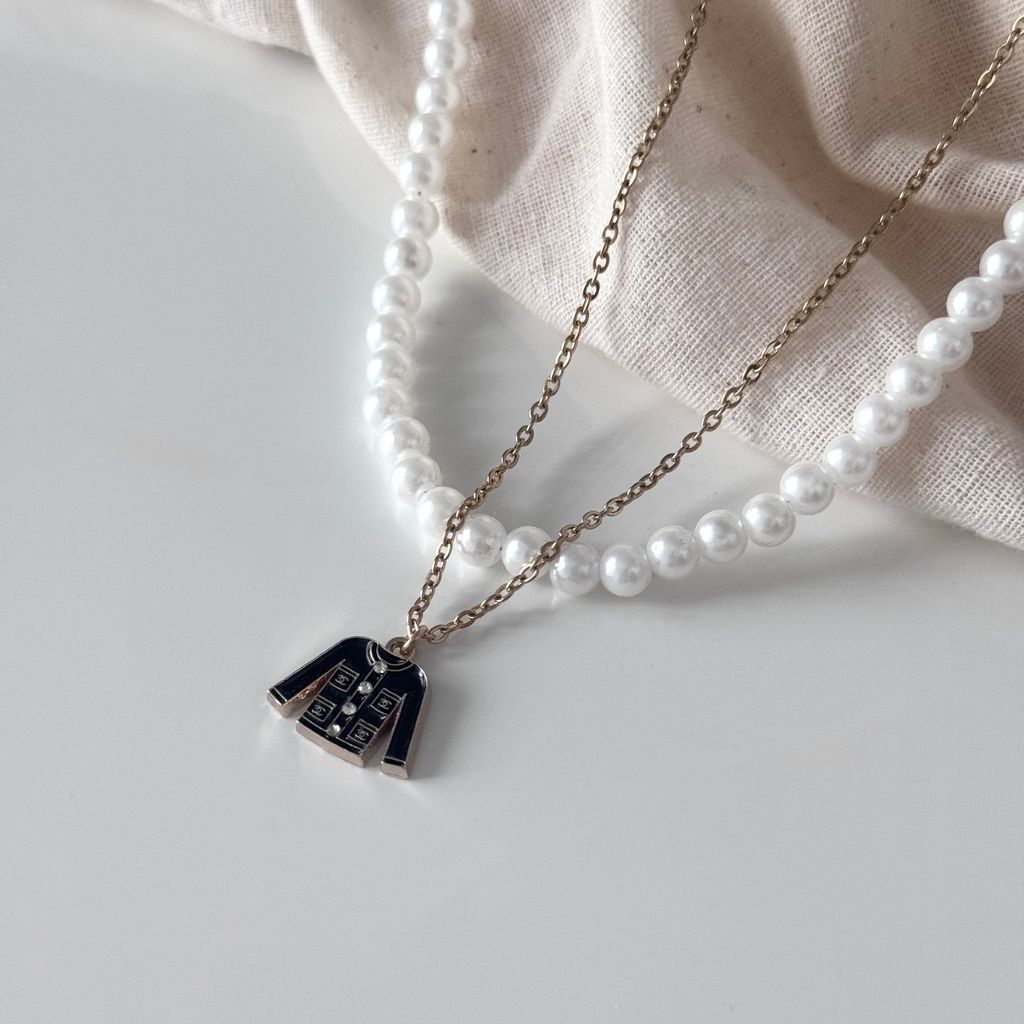 RECC.NECK092 香奈兒CHANEL中古鈕扣改造雙層項鍊_珍珠